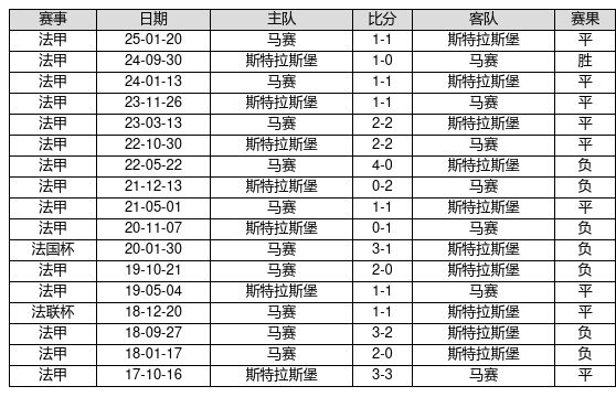 斯特拉斯堡 VS 马赛两队近10年的交战次数为17场,斯特拉斯堡1胜9平7负,赢球概率为5.9%,平局概率为52.9%,输球概率为41.2%。