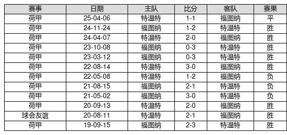 特温特 VS 福图纳两队近10年的交战次数为12场,特温特8胜1平3负,赢球概率为66.7%,平局概率为8.3%,输球概率为25.0%。