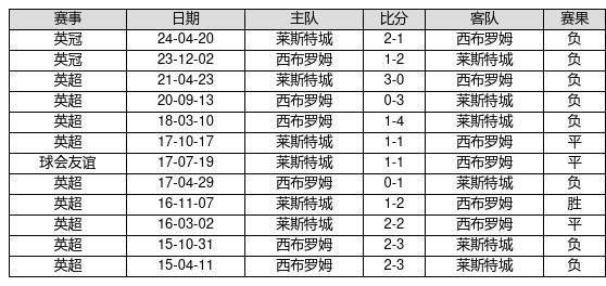 西布罗姆 VS 莱斯特城两队近10年的交战次数为12场,西布罗姆1胜3平8负,赢球概率为8.3%,平局概率为25.0%,输球概率为66.7%。