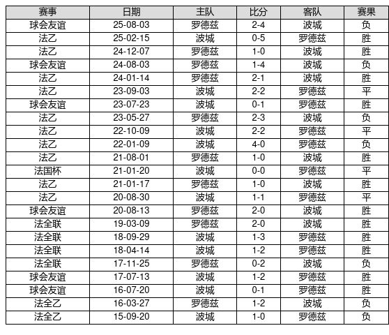 罗德兹 VS 波城两队近10年的交战次数为23场,罗德兹12胜4平7负,赢球概率为52.2%,平局概率为17.4%,输球概率为30.4%。