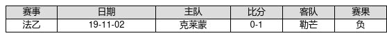 克莱蒙 VS 勒芒两队近10年的交战次数为1场,克莱蒙0胜0平1负,赢球概率为0.0%,平局概率为0.0%,输球概率为100.0%。