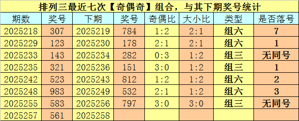 开奖回顾:排列三第2025257期开奖号码为:561。奖号类型为:组六,大小类型为:大大小,奇偶类型为:奇偶奇,无重号。
